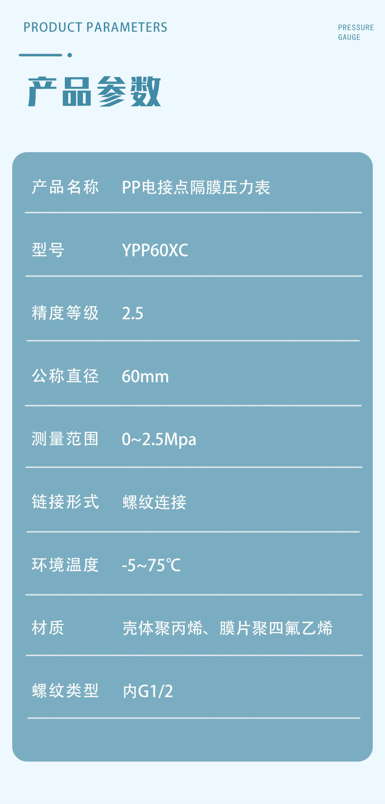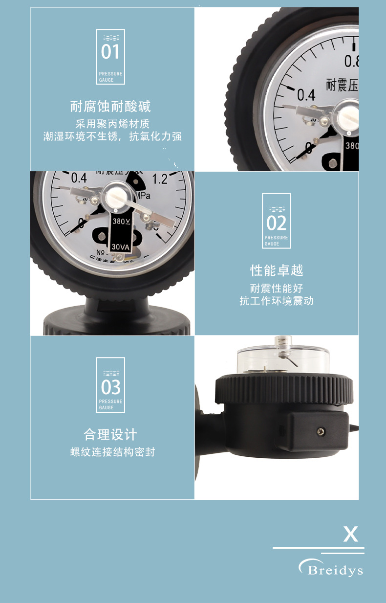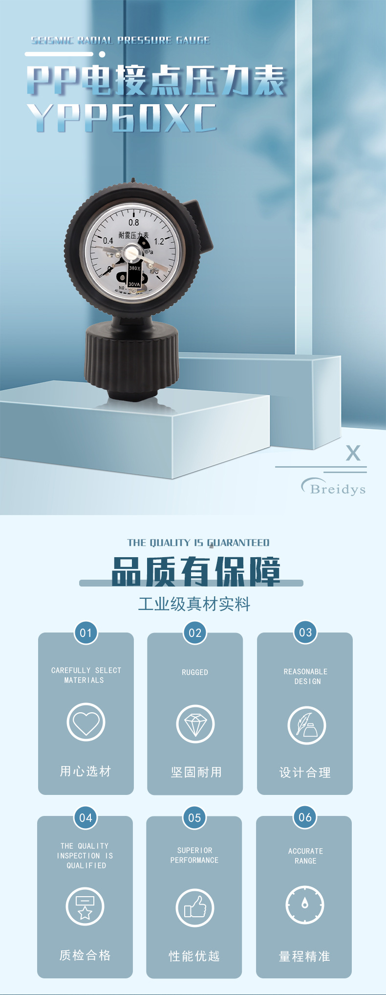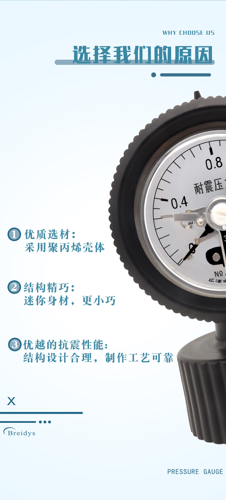 Breidys YPP60XC PP Diaphragm Pressure Gauge (0-25KG/0-2.5MPa, Acid/Alkali Resistant, Shockproof) for Upper/Lower Limit Control