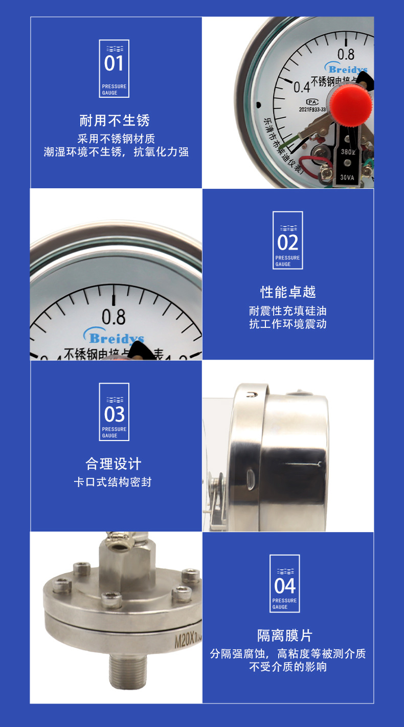 Breidys YTP100NBFXCML Diaphragm Pressure Gauge (100mm, 0-1.6MPa, 1.6 Accuracy) for Water Pressure Control Replaces YTP100XC-ML