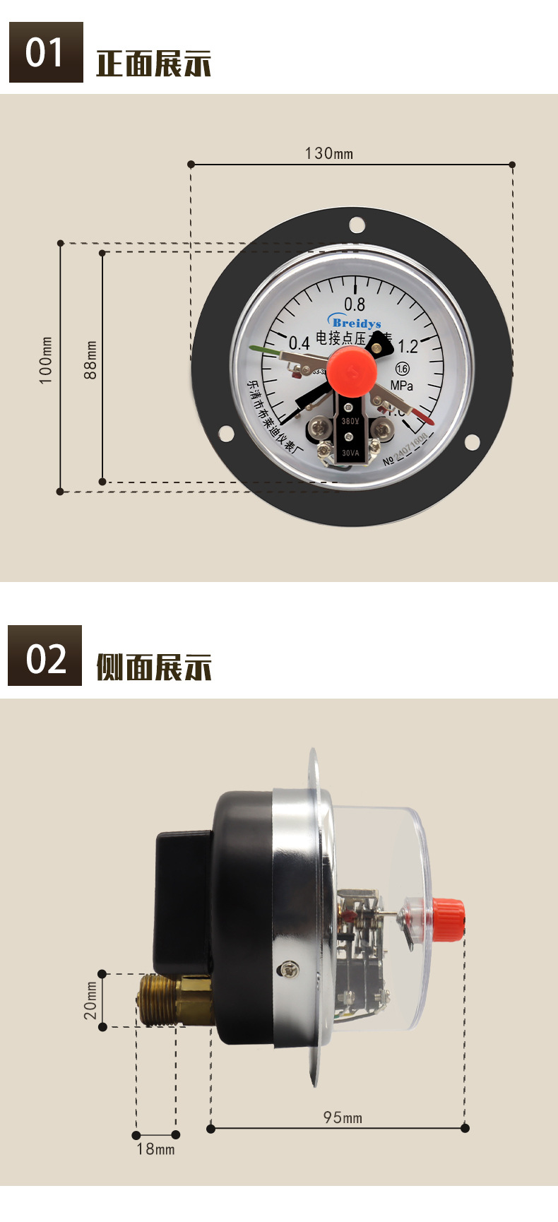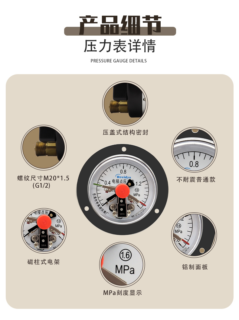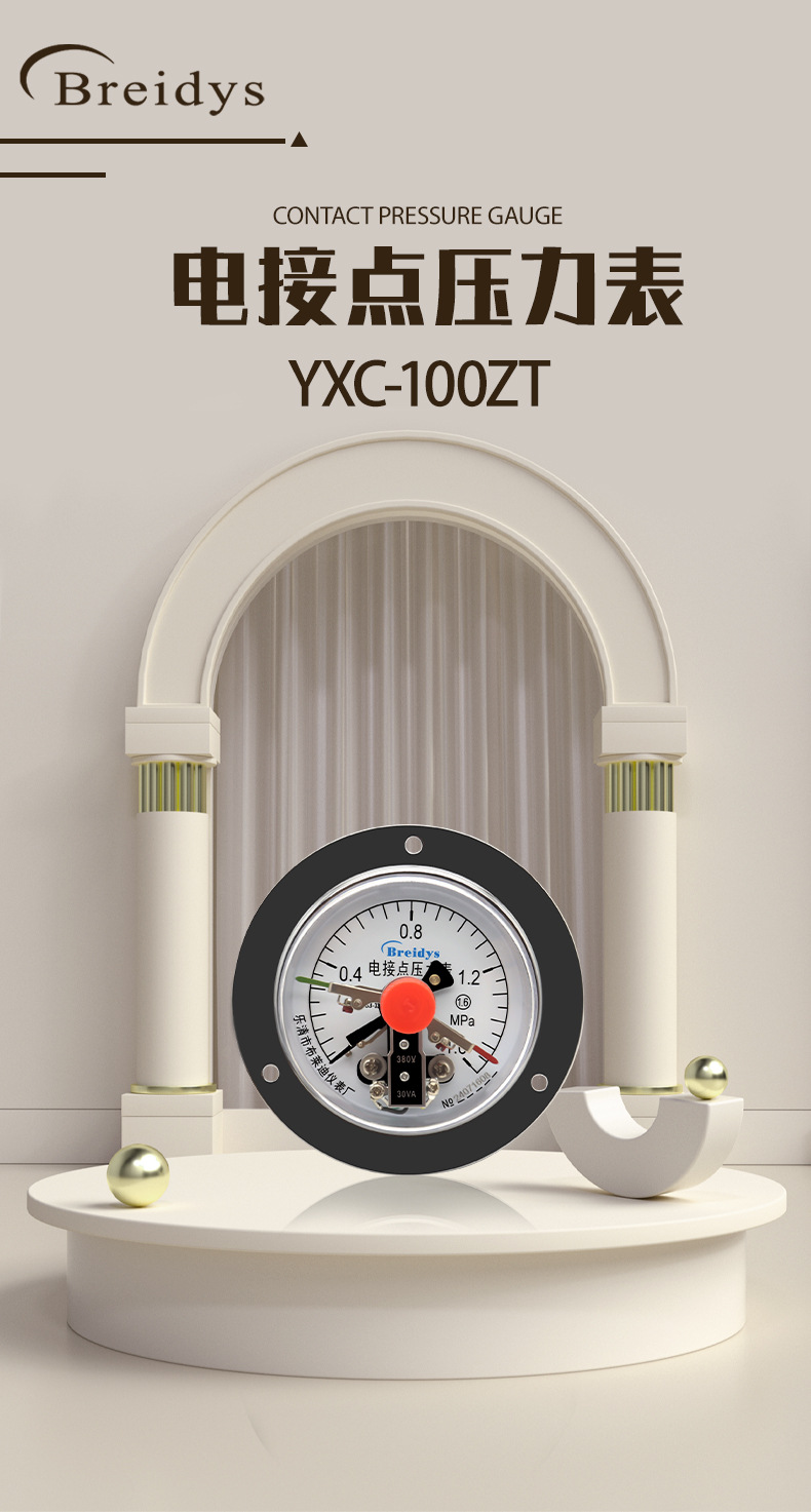 Breidys YXC100ZT Axial Electrical Contact Pressure Gauge (0.8 MPa, 1.6 Grade) for HVAC Systems, Replaces Breidys Gauges