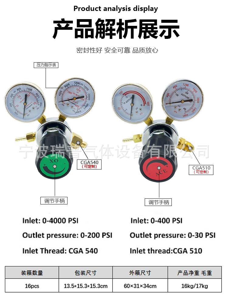 - Precise Pressure Control: Provides accurate and stable pressure reduction for optimal gas flow, ideal for welding, cutting, and other industrial uses.