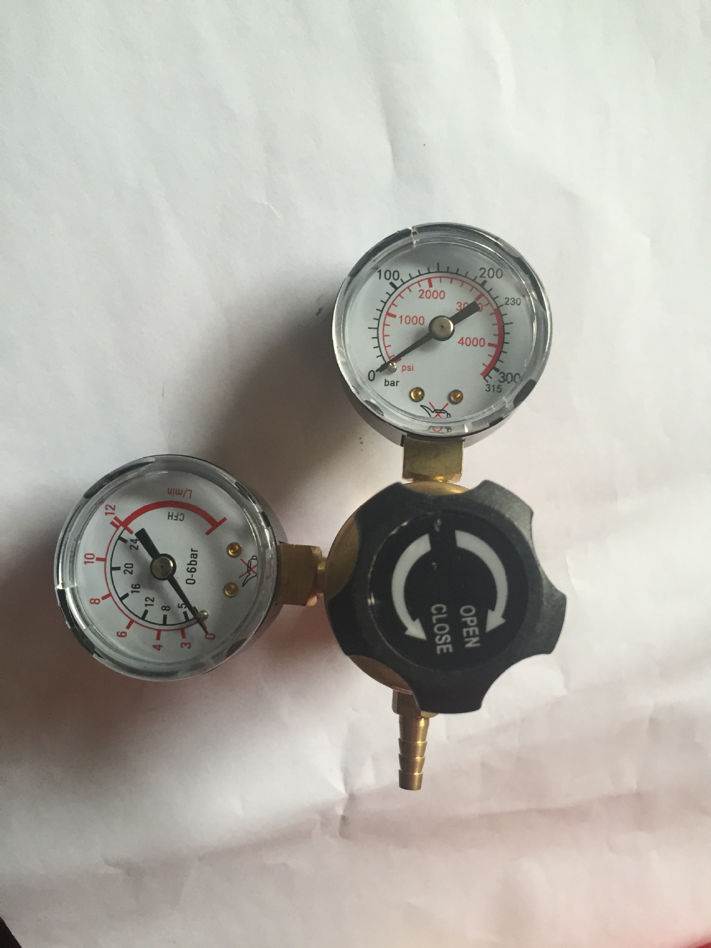 CO2 Brass Pressure Reducer Regulator with Flow Meter (0-6 bar, 0-315 bar/psi) for Carbon Dioxide Systems