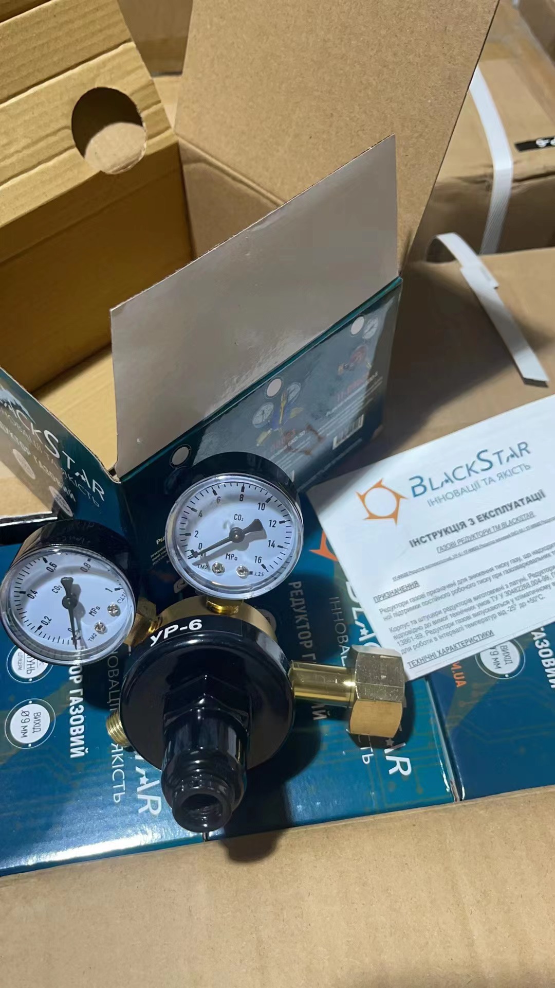 CO2 Gas Cylinder Regulator W/ Dual Gauges, Pressure Reducing Valve UR-6 for Welding