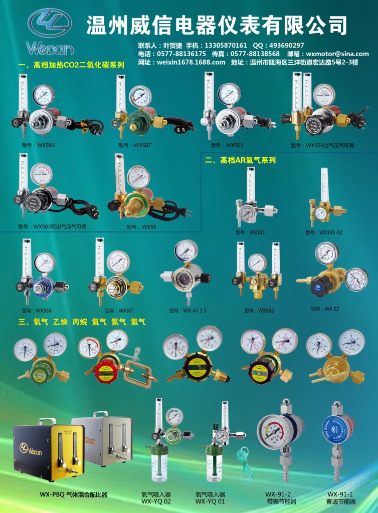 - Key Features: This CO2 gas regulator features a dual flow meter, model WX-503, with individual flow readings up to 25 PM for precise gas control in welding applications.