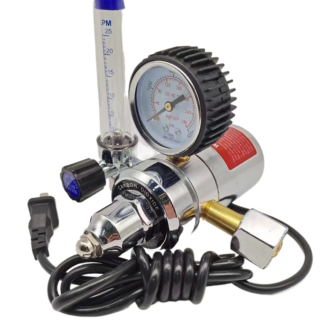 CO2 Heated Pressure Regulator with Flow Meter and Gauge for MIG/MAG Welding, 36V, Single Stage Structure