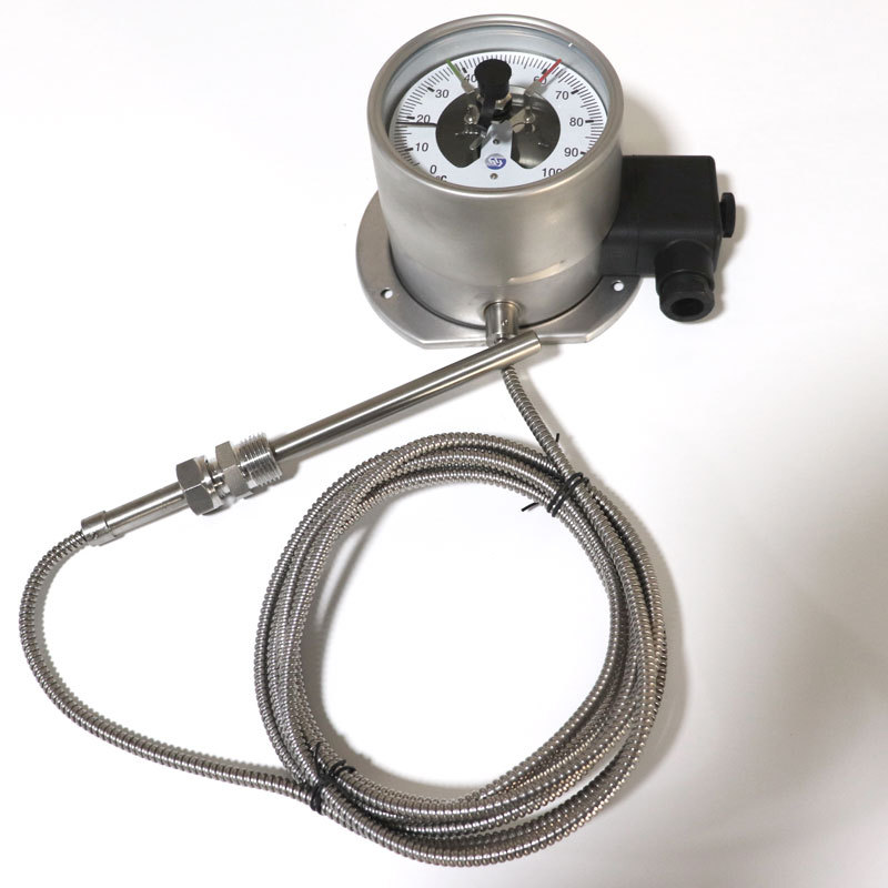 Capillary Remote Pressure Thermometer WTZX-280 (0-100°C) with Electrical Contacts, Radial Mounting, 100mm Dial for Industrial HVAC