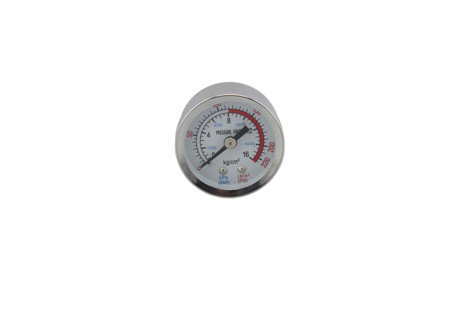 - Key Specs & Performance: Features dual pressure scales from 0 to 1.6 MPa (0 to 16 kg/cm²) and 0 to 220 PSI (0 to 15 bar), providing precise and comprehensive pressure readings for diverse requirements.