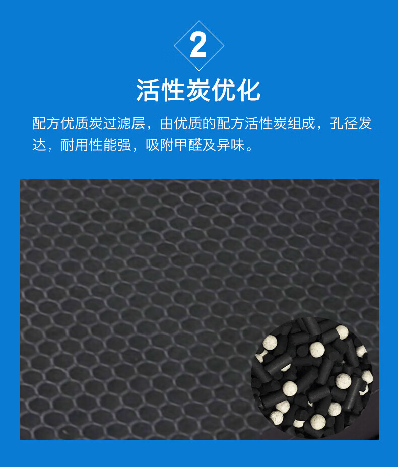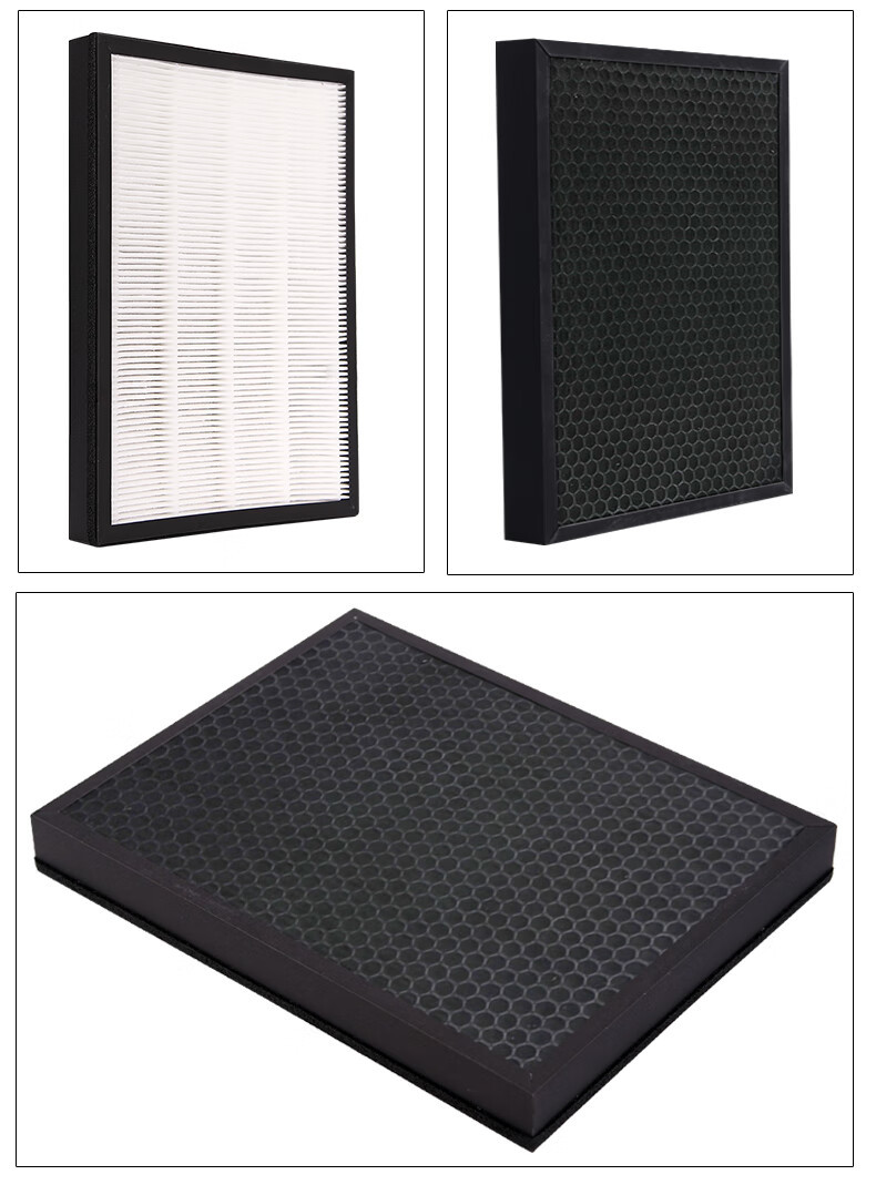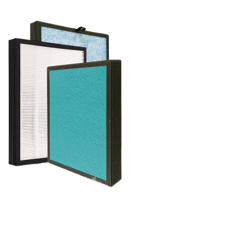- Quality Materials: Features a multi-layered composite filtration system, including a white pleated particulate filter and a blue activated carbon layer, ensuring comprehensive air purification.