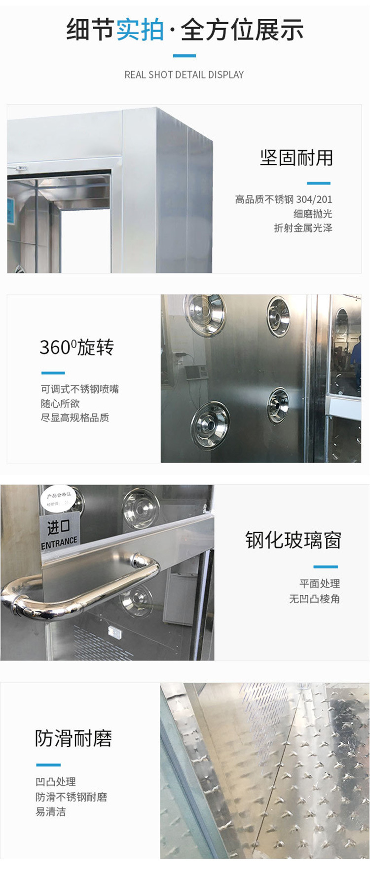 - Smart Automation: Equipped with intelligent voice prompts and semi-automatic operation for enhanced convenience and ease of use in controlling air shower cycles.