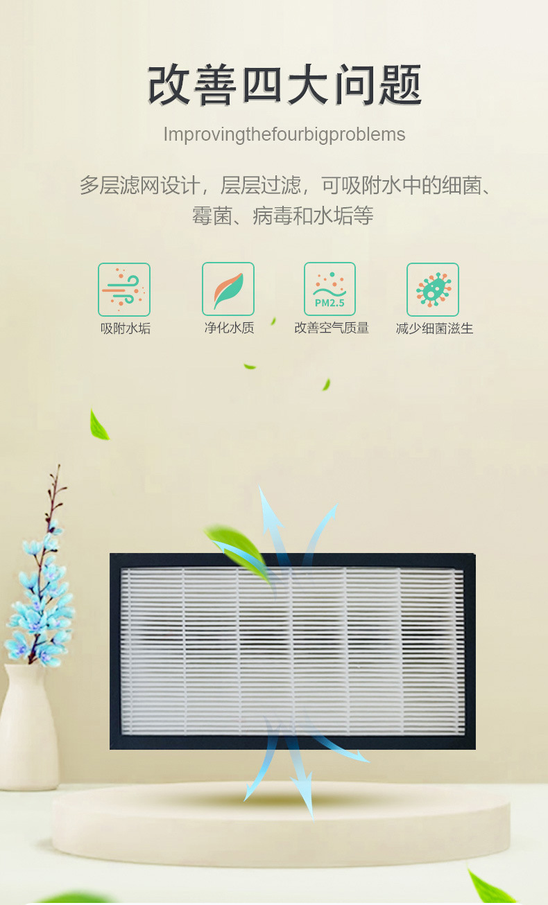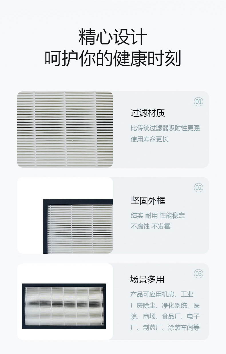 - Premium Filtration Media: Features a multi-layer composite design, including a high-efficiency HEPA filter and activated carbon, ensuring superior removal of airborne particles, allergens, and odors.