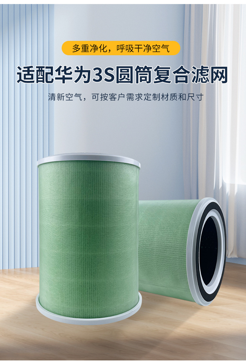 Cylindrical Composite Filter Screen for Huawei 3S Air Purifier, HEPA Filter, Formaldehyde Removal, Eliminates Haze