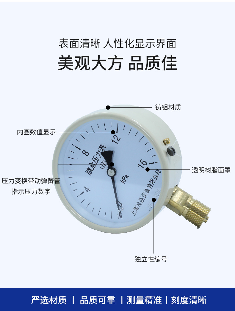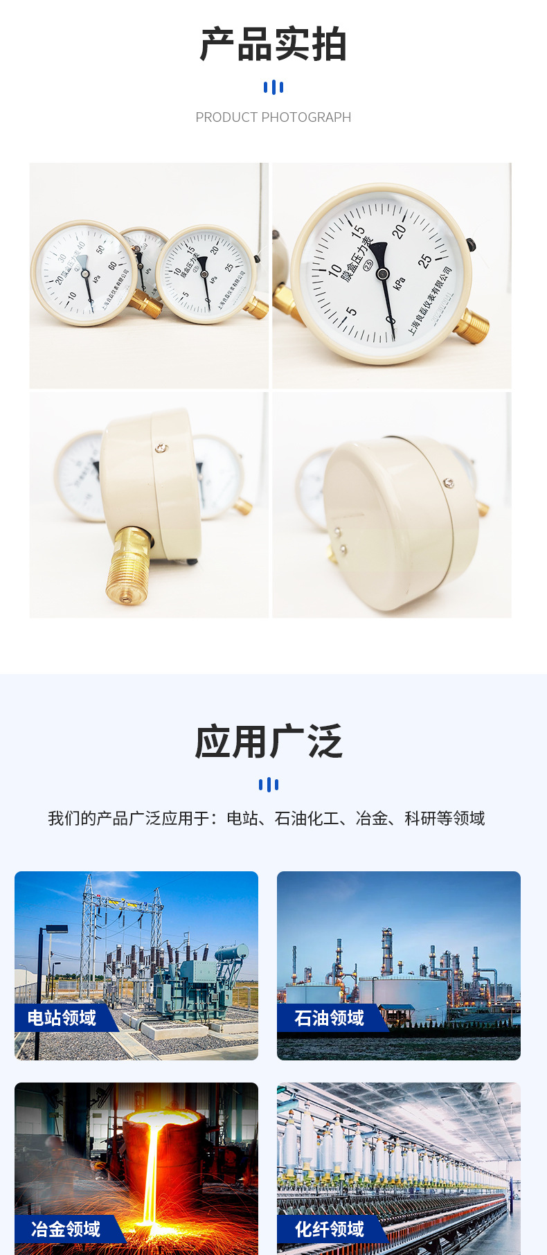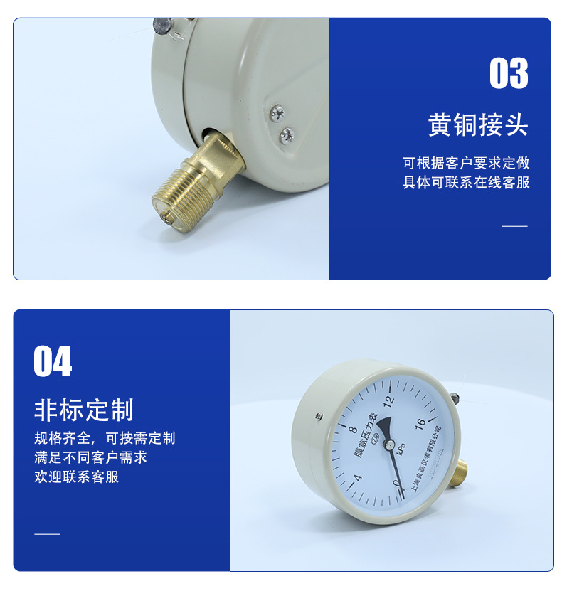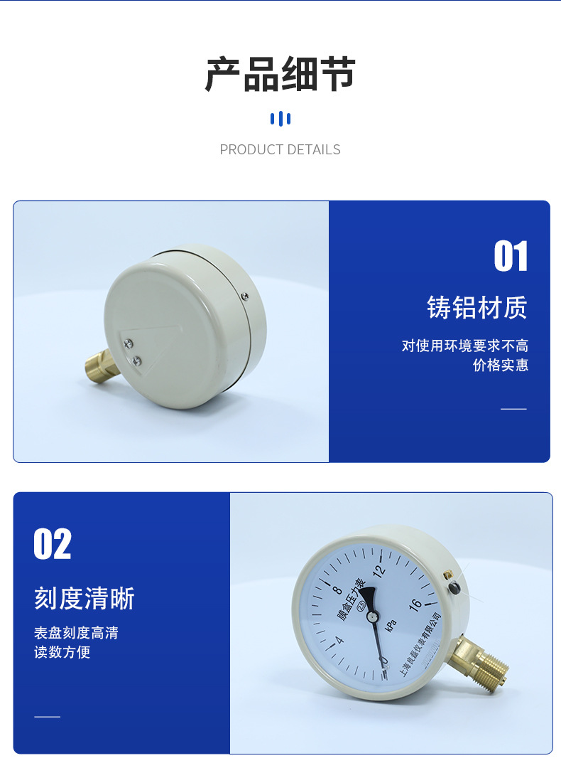 - Key Specification: Direct-reading diaphragm pressure gauge with a 0-1.6 Kpa range and 2.5 accuracy class, specifically designed for home water pressure monitoring.