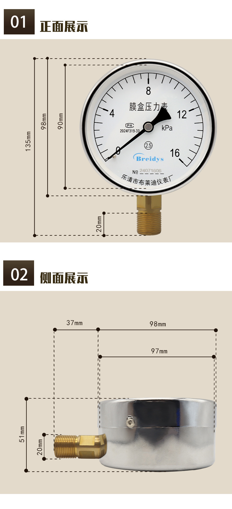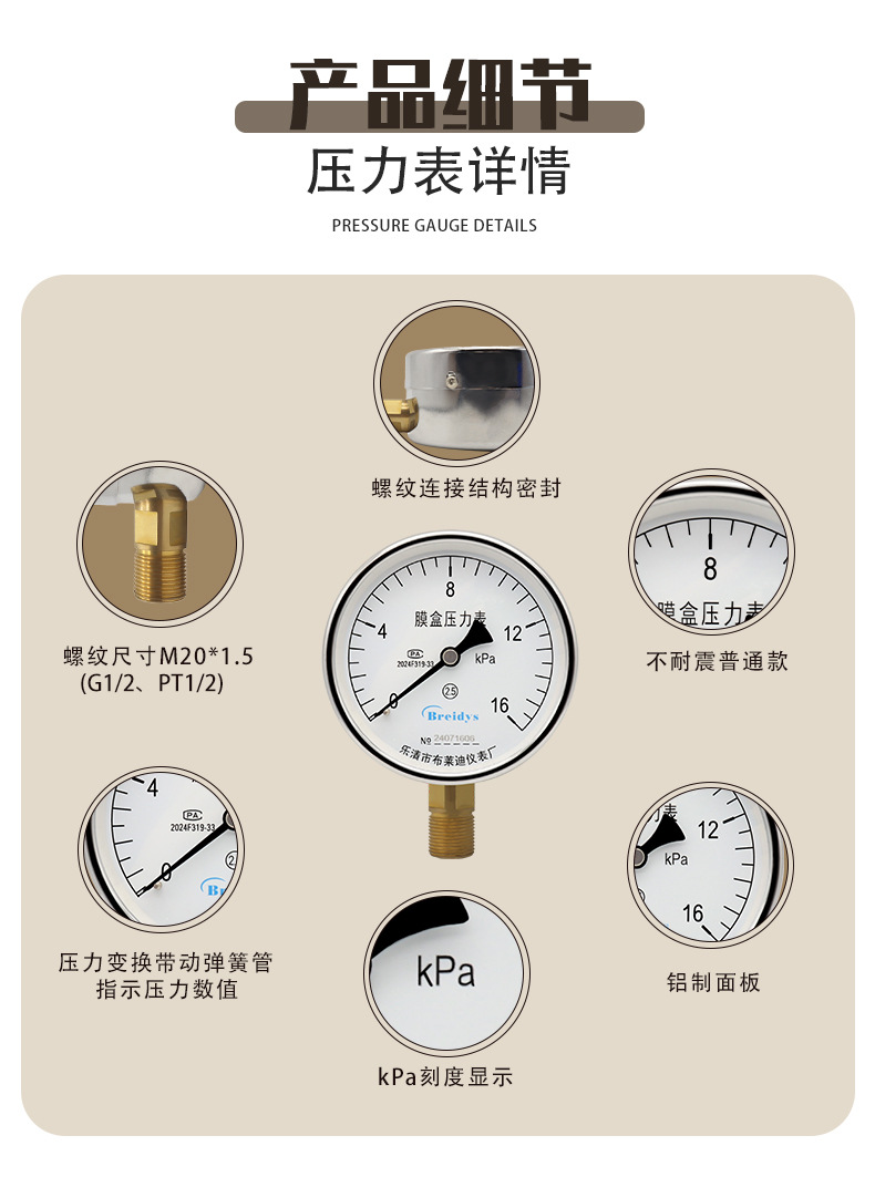- Key Specs & Performance: Features a 0-16 kPa measuring range with 2.5 accuracy class and M20*1.5 connection type, providing reliable and precise pressure readings for critical monitoring.