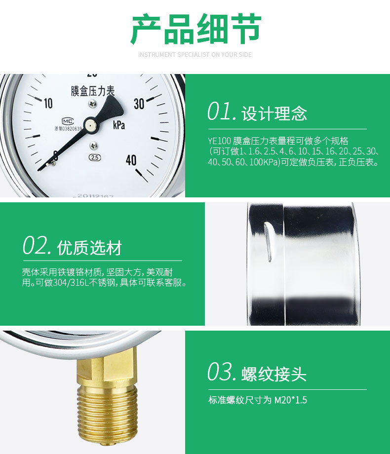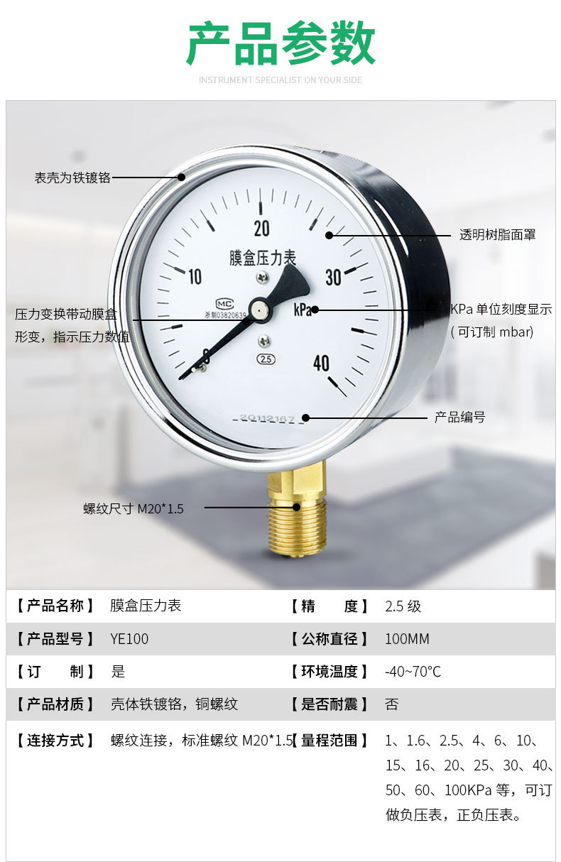 - What You Get: One high-precision YE100 diaphragm pressure gauge. Built for quality, stability, and broad specification compliance to meet your industrial needs.