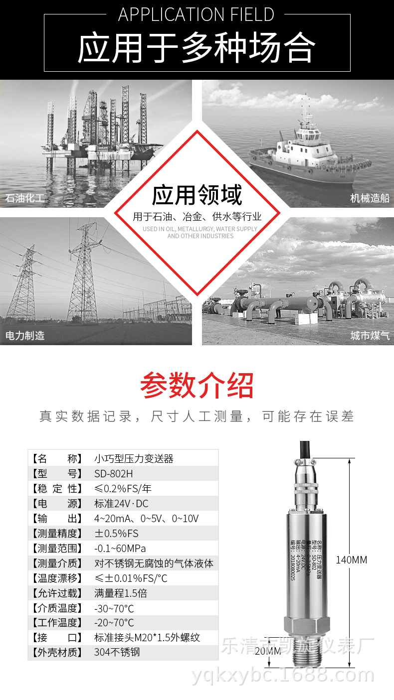 - Quality & Durability: Constructed with robust 304 stainless steel, this pressure transmitter offers excellent corrosion resistance and ensures long-term reliability even in harsh environments.
