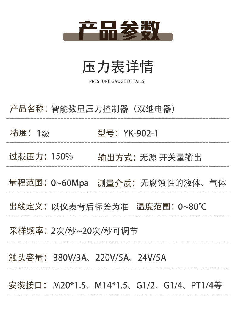 - Key Specs & Performance: High-precision measurement from 0-60Mpa, equipped with dual relays for enhanced control and stability.