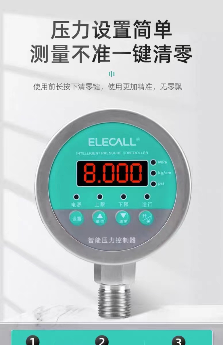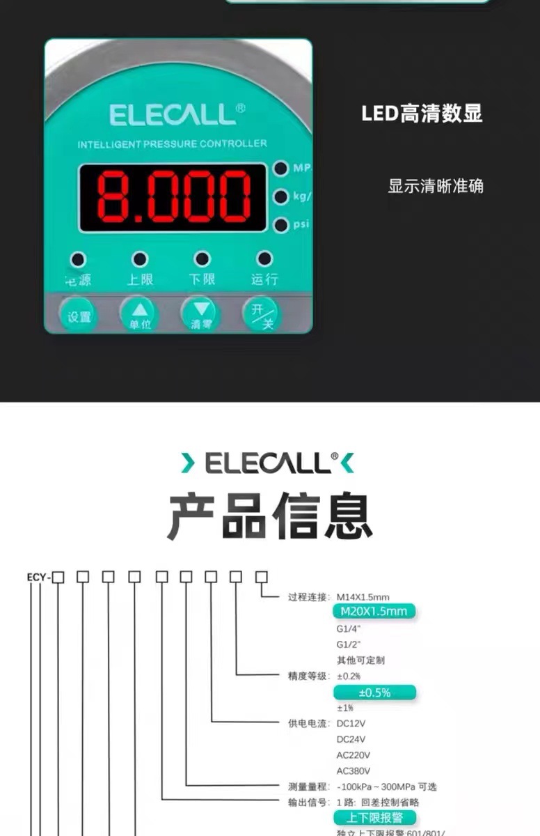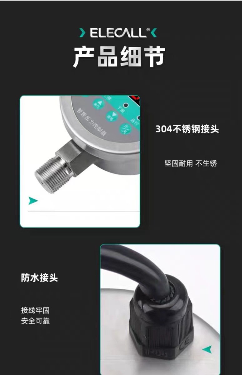 Digital Pressure Switch with Dual Relay Output and Alarm Function for Home Water Supply and Industrial Control, Model ECY-80X