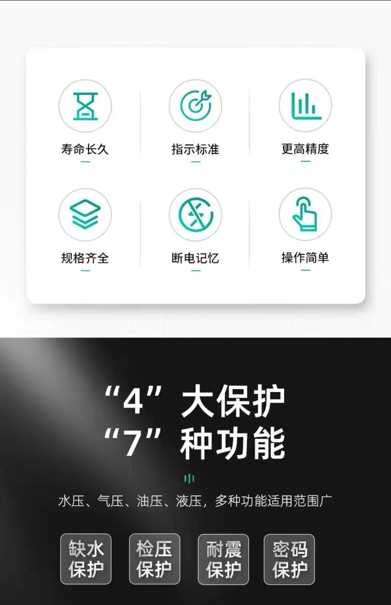 - Key Specs & Performance: Equipped with a digital display showing pressure readings (MPa, kg/cm², psi), dual relay output with upper and lower limit alarms for precise control and immediate alerts.