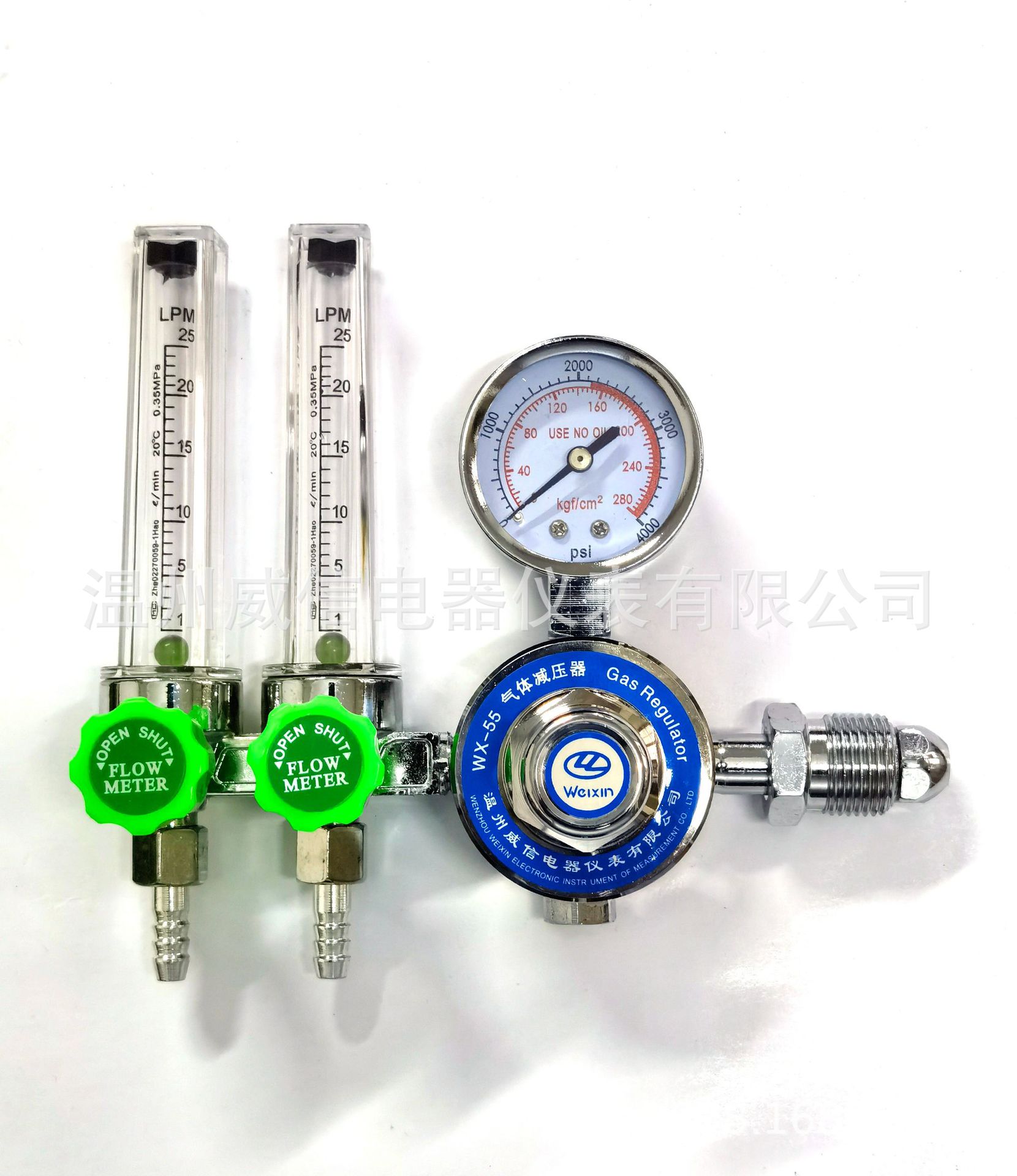 Full Brass Dual Flow Argon & CO2 Gas Regulator CGA580 for TIG Welder with Double Output Flowmeters