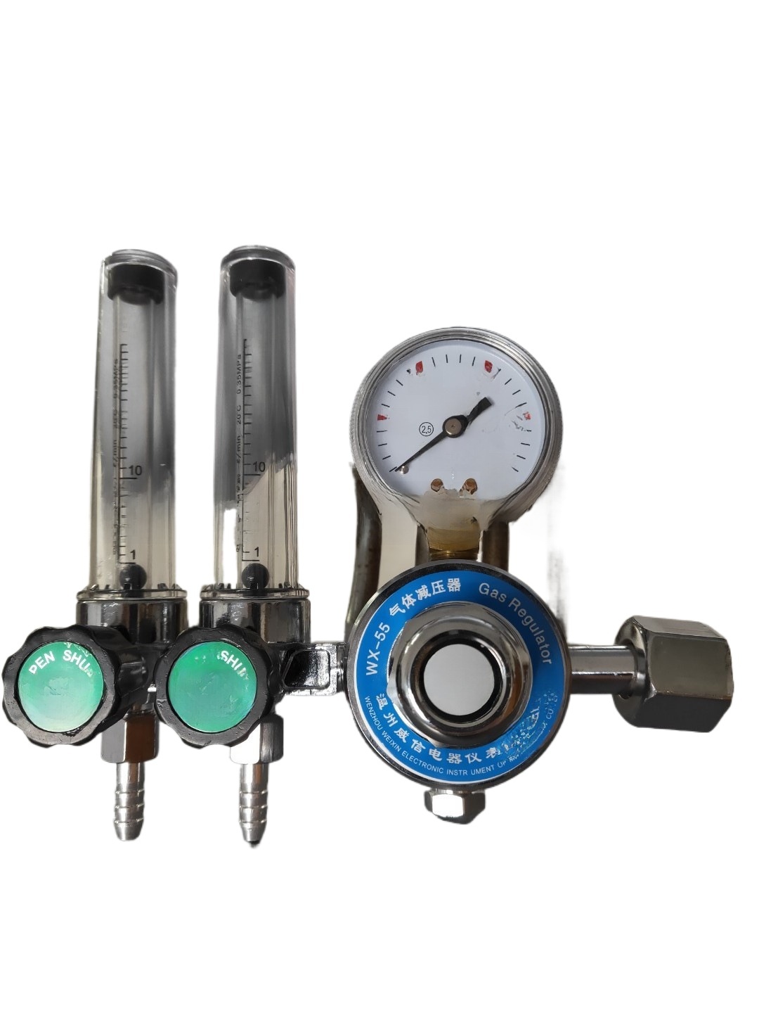 - Key Features: This gas regulator features dual flow meters with a range of 0-25 LPM, and a clear pressure gauge displaying 0-25 MPa, ensuring precise control for various applications.