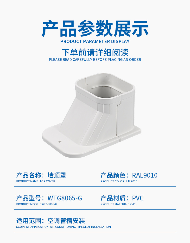 Durable PVC Air Conditioner Pipe Ducting Wall Top Cover (WTG8065-G) for Outdoor Unit Protection, Replaces WTG130-G, WTG10075-G