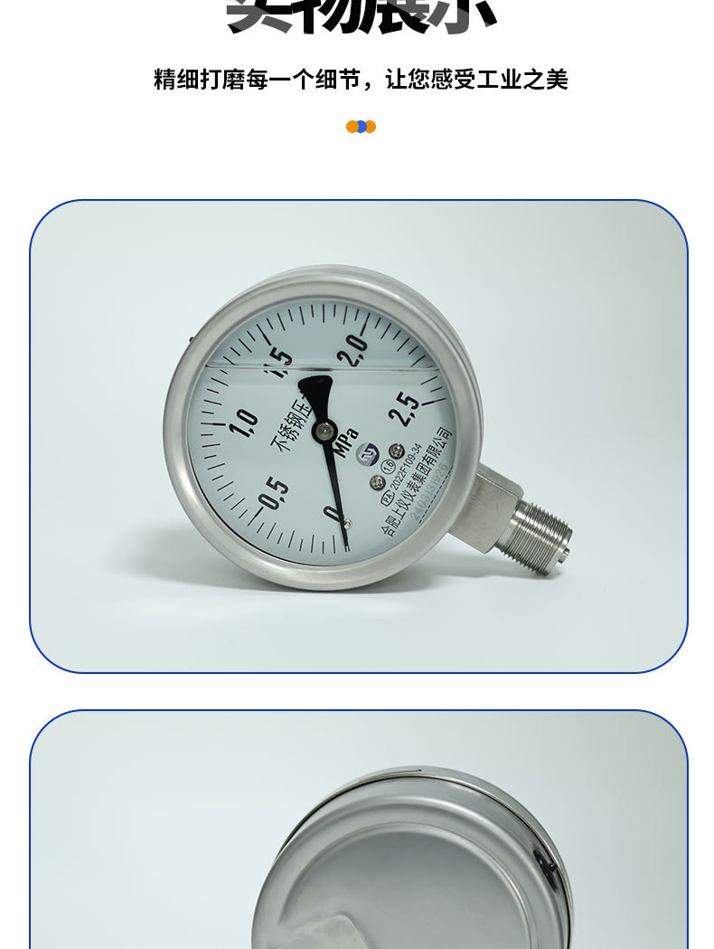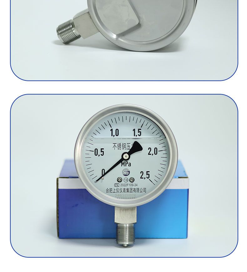 Durable Stainless Steel Pressure Gauge (0-2.5 MPa, 100mm Radial Connection) for Water, Hydraulic, Gas, and Oil Pressure Systems
