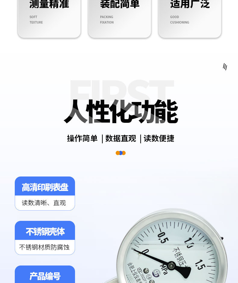 - Key Specs & Performance: Features a clear measurement range of 0-2.5 MPa and a 100mm nominal diameter, offering precise and easy-to-read pressure indications for optimal system monitoring.