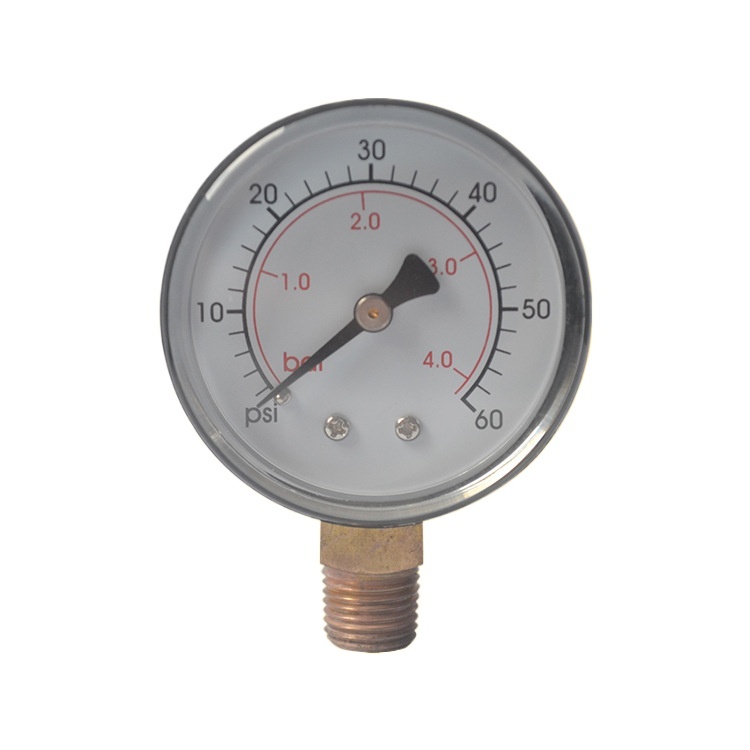 Durable Stainless Steel Pressure Gauge (0-60psi/0-4bar) with Radial Mounting, 50mm Dial for HVAC Systems