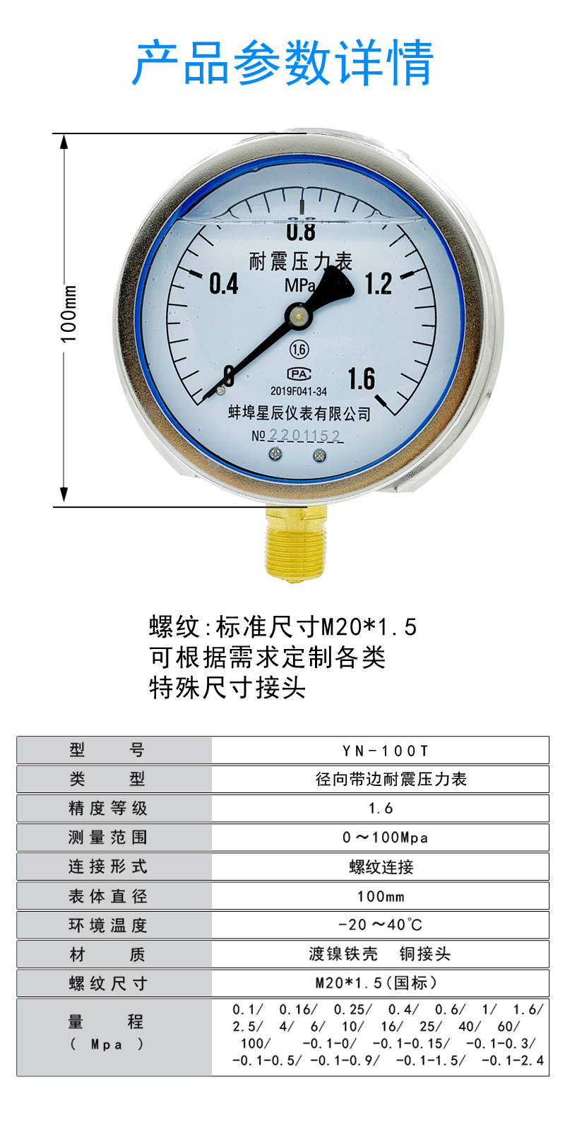 - Key Specs & Performance: YN-100T series with an impressive 0-1.6 MPa measurement range and 1.6 accuracy class for precise monitoring. Nominal diameter of 100mm.