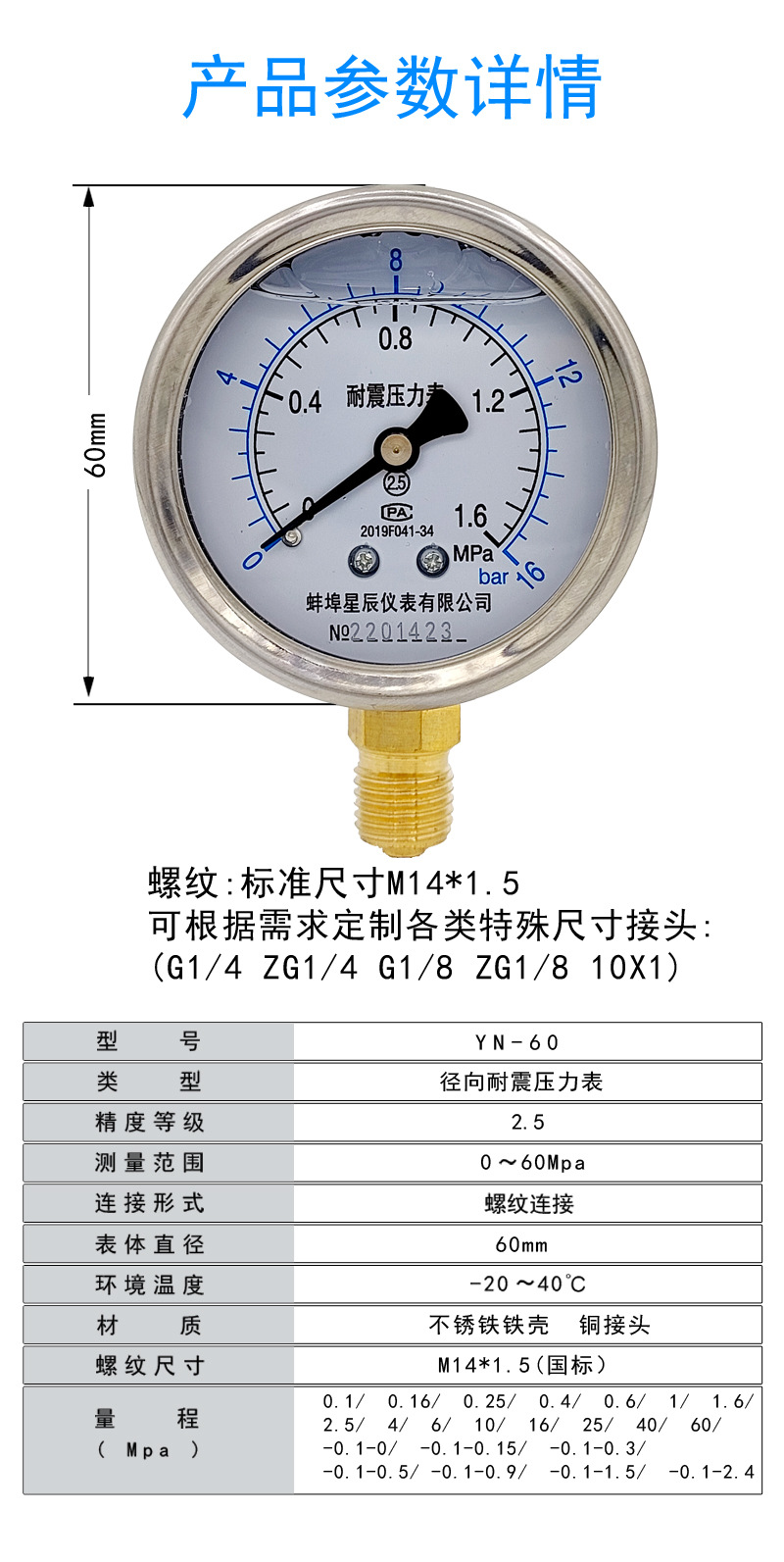 - Key Specs & Performance: Model YN-60 seismic pressure gauge with a 0-1.6 MPa measurement range and 2.5 accuracy class, providing precise and reliable readings for critical operations.