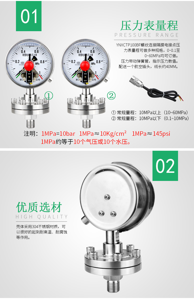 - Superior Quality & Durability: Constructed with high-grade stainless steel for the threaded connection and diaphragm, offering excellent resistance to strong corrosives and vibrations for prolonged operational life.