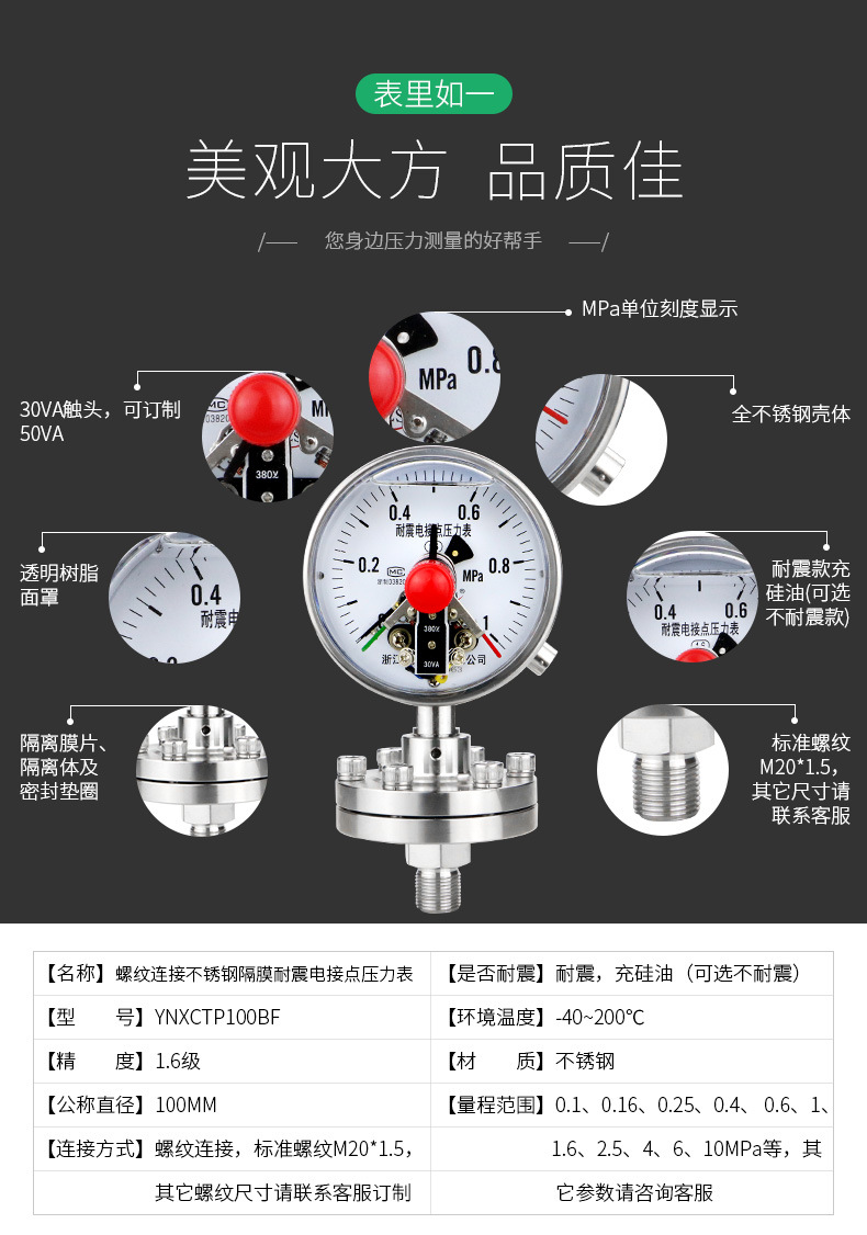 - Reliable Compatibility: Specifically designed with YNXCTP100BF model and M20*1.5 threaded connection, ensuring broad compatibility with various industrial systems requiring robust pressure monitoring.