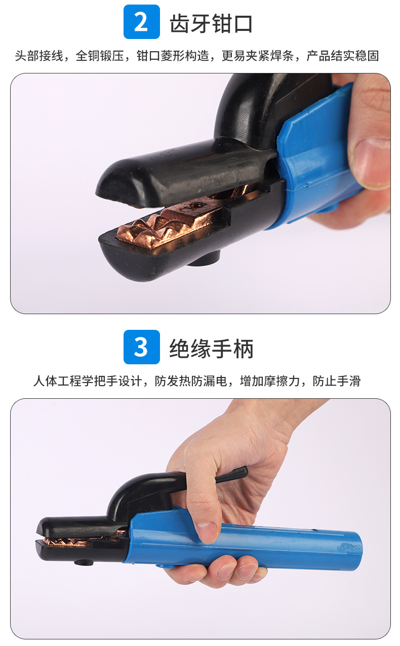 - Secure Electrode Grip: Provides a strong and stable grip on welding rods up to 4.0mm diameter, guaranteeing reliable contact.