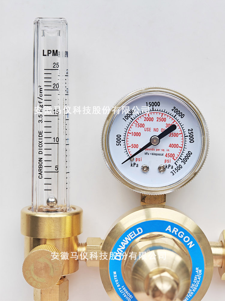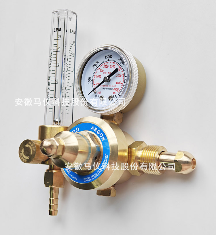 Argon Gas Pressure Regulator, Dual Gauge Single Stage, US Standard, 0-25 MPa, 30 Flow Rate