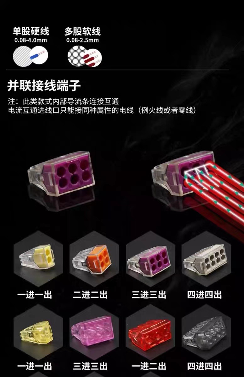 - Wide Compatibility: Universal design for both soft and hard wires, ensuring versatile application in various electrical connections.