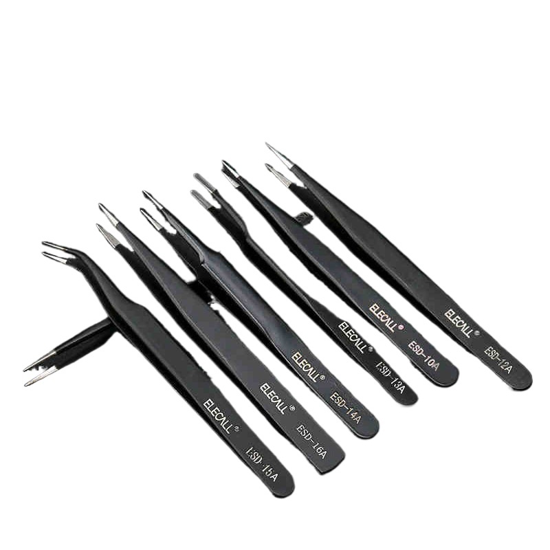 - What You Get: This set includes multiple types of ELECALL ESD tweezers (ESD-10A, 12A, 13A, 14A, 15A, 16A), providing a comprehensive solution for various intricate tasks, backed by reliable performance.