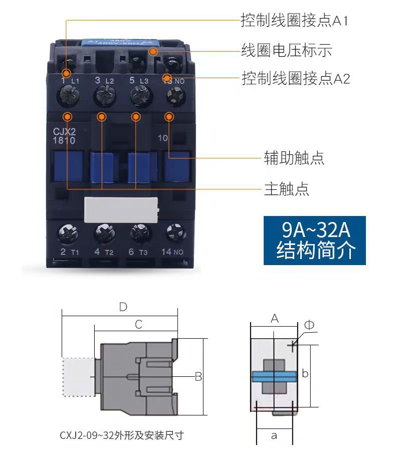 - Wide Compatibility: ELECALL CJX2 series AC contactor, compatible with various electrical systems, suitable for voltages 220V/380V and currents from 9A to 65A, including CJX2-1210 and CJX2-1810 models.