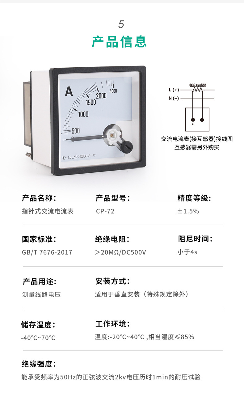 - Wide Compatibility: ELECALL CP-72 AC Ammeter is designed for various industrial electrical systems, ideal for measuring alternating current up to 2000A with a 5A current transformer.