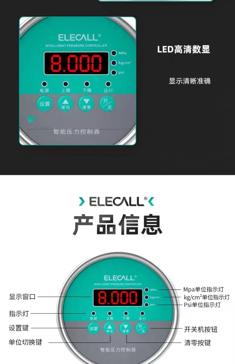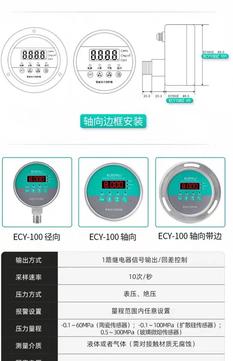 - Wide Compatibility: ELECALL ECY-100 intelligent pressure controller features a 100mm dial for versatile applications, seamlessly fitting various industrial and HVAC setups.