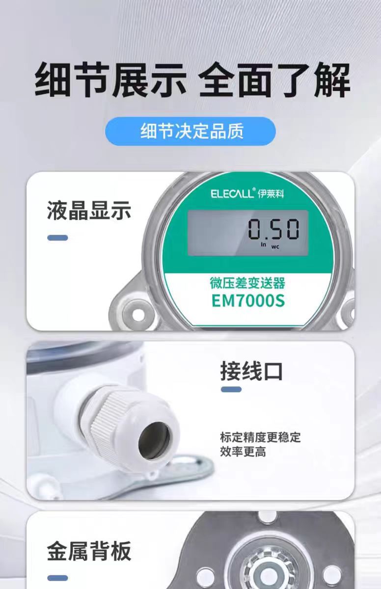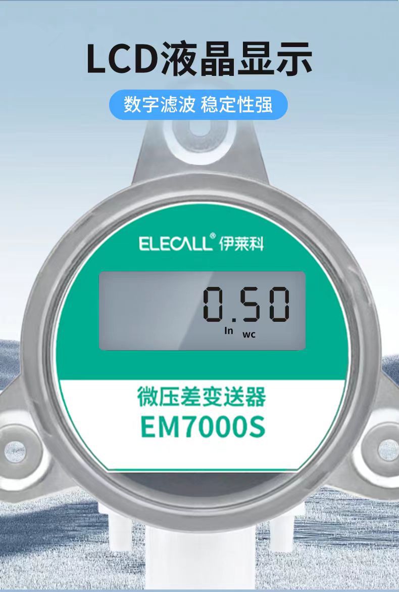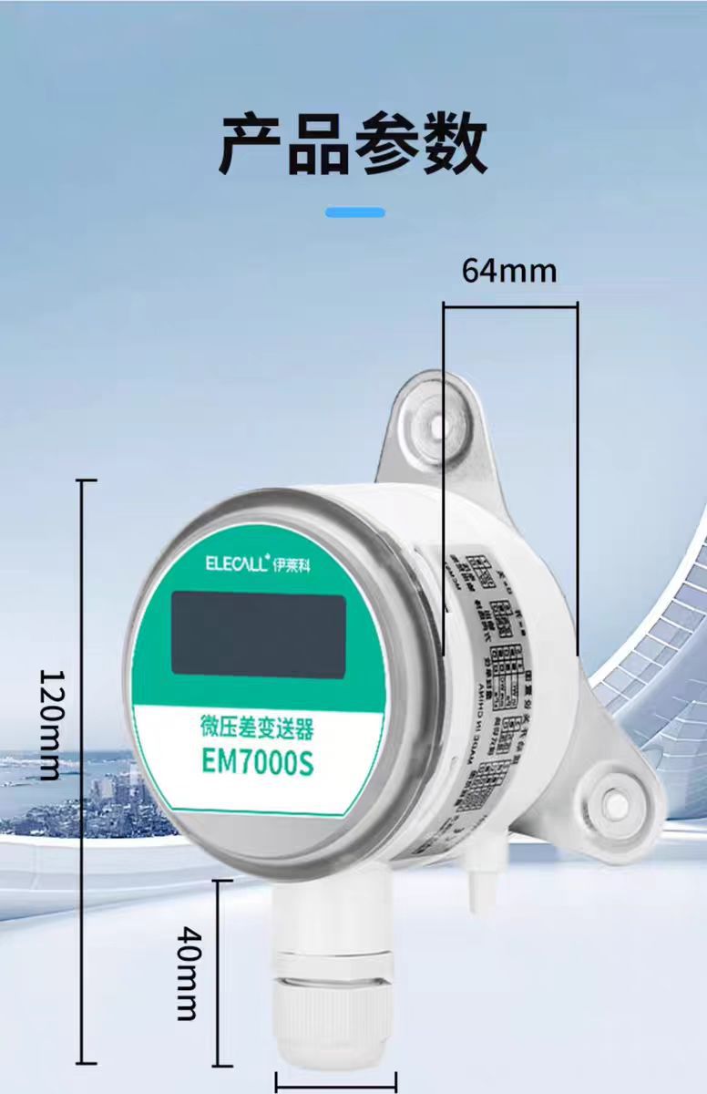 ELECALL EM7000S High Precision Digital Differential Pressure Transmitter (0-10V, 4-20mA Output, RS485 Communication) for HVAC Systems