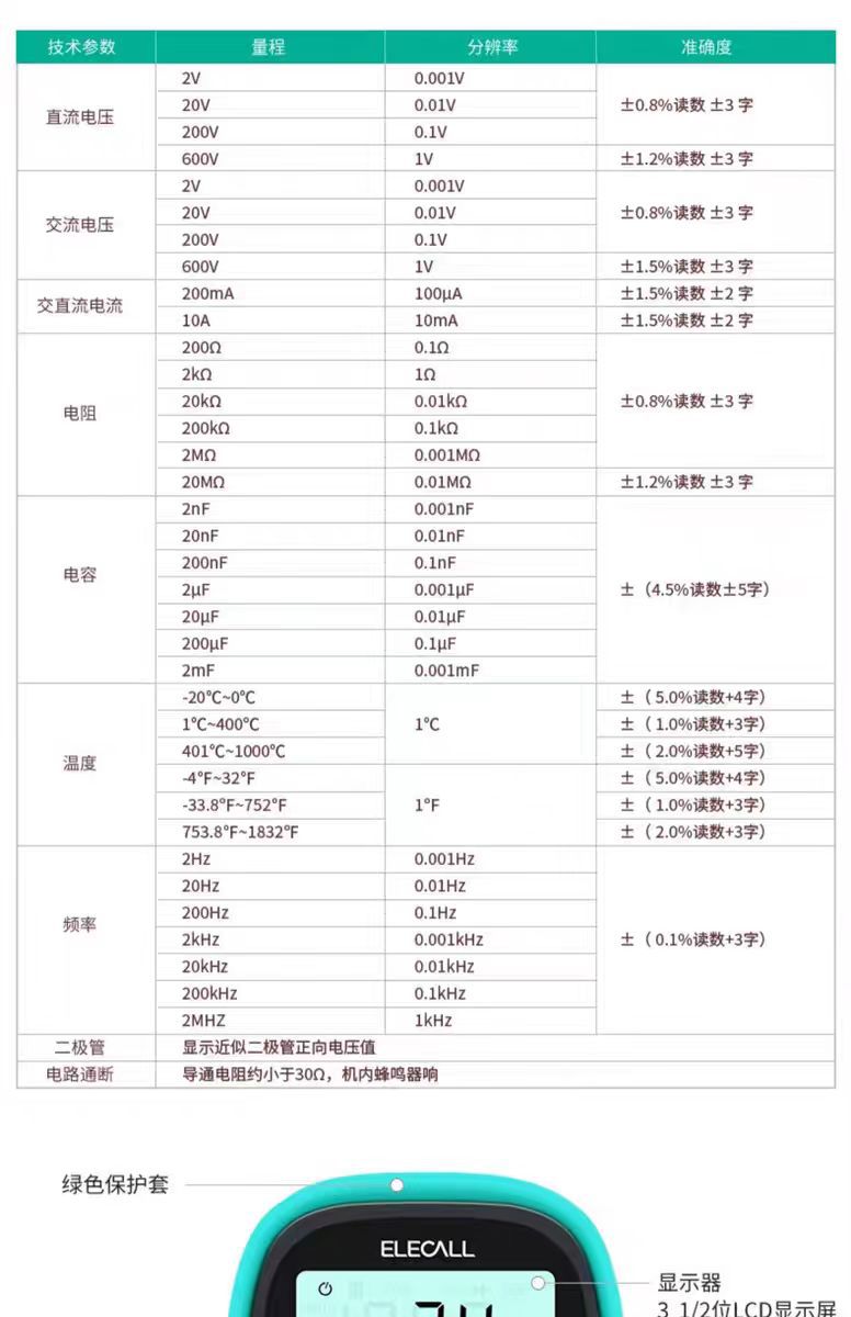 ELECALL EMAX7 Digital Multimeter (Measures Capacitance, AC/DC Voltage) for Electrician Maintenance