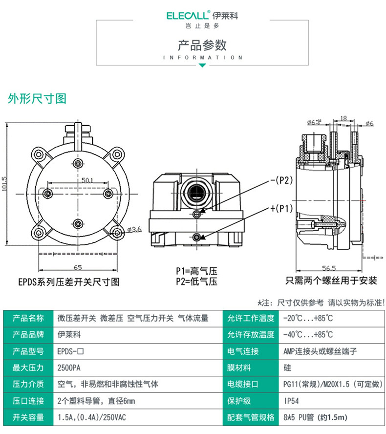 - What You Get: One ELECALL Micro Differential Pressure Switch, ready for immediate integration into your ventilation or gas flow system. A reliable solution for air pressure monitoring and control.