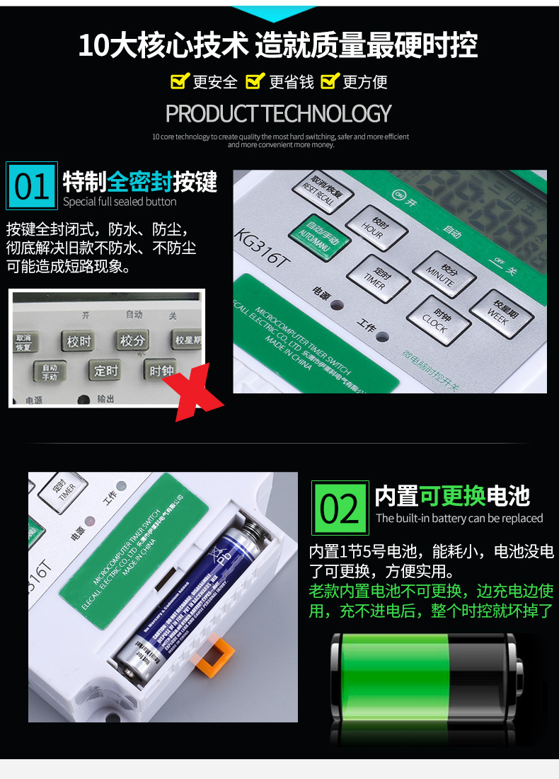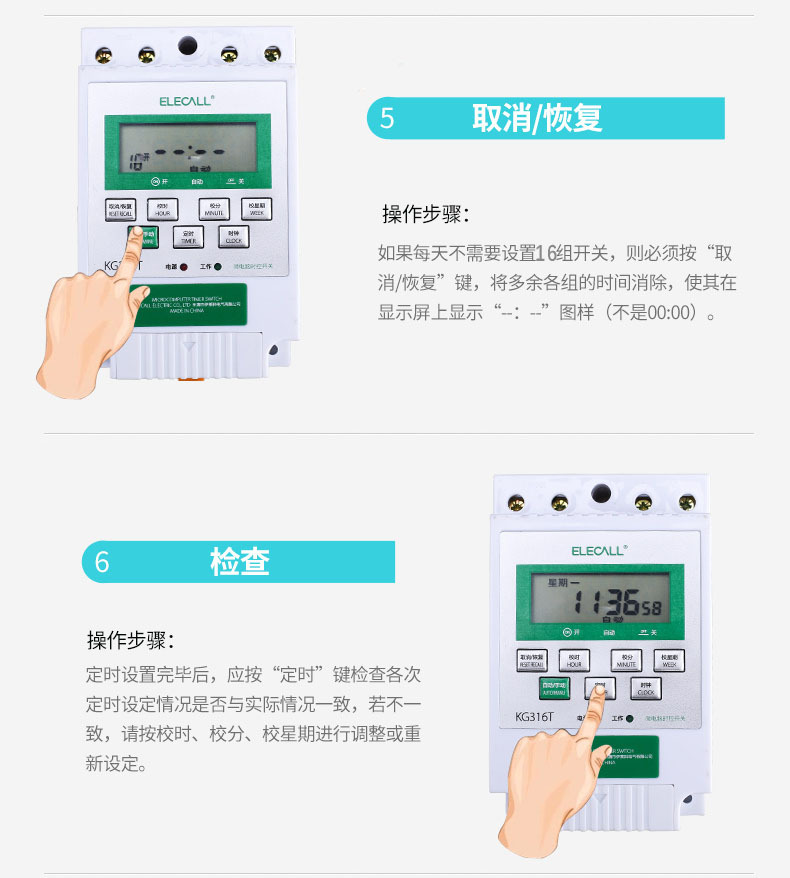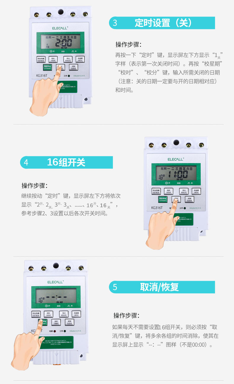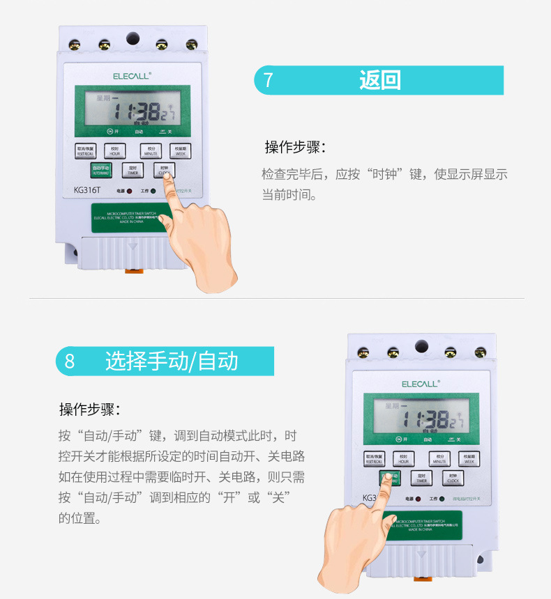 ELECALL KG316T Microcomputer Timer Switch (30A Relay, Automatic/Manual Control, Memory Function) for Appliance Timing Control