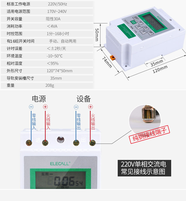 - Package Content: Includes 1x ELECALL KG316T Microcomputer Timer Switch, 1x two-purpose test pen, and 1x installation rail for a complete setup solution.