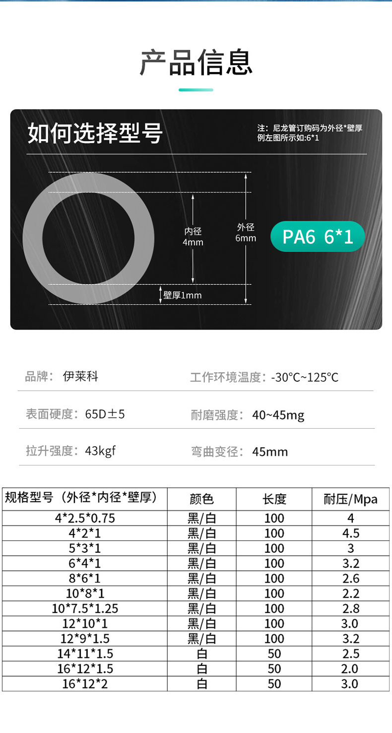 ELECALL PA Nylon Air Tube Hose -30 to 125℃ Temperature Range, 30KG Pressure Resistance, Import Pure Material, Thick Wall Design