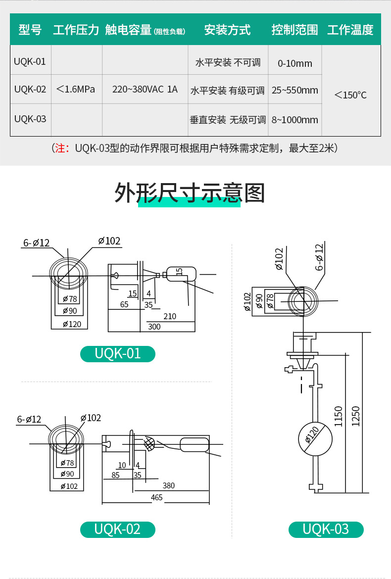 - Wide Compatibility: ELECALL UQK series float level switches are available in UQK-01, UQK-02, and UQK-03 models, widely compatible with various industrial fluid control systems.