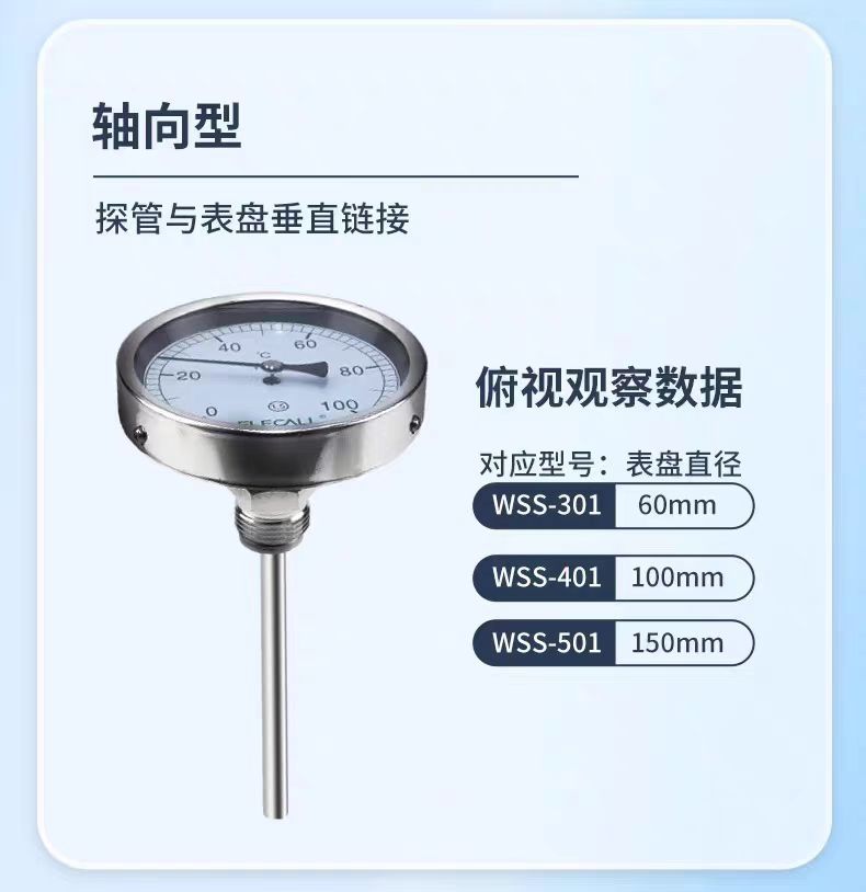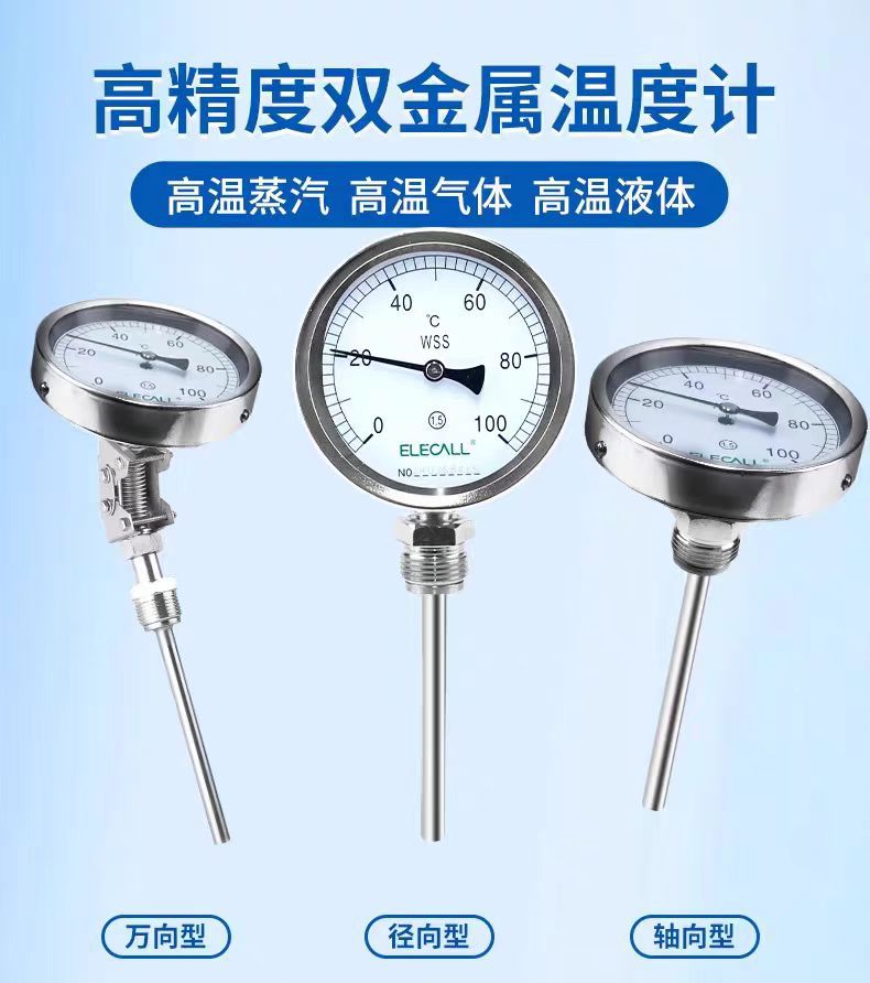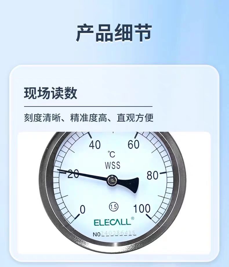 ELECALL WSS Bimetal Thermometer (Axial/Radial Optional, 0-100°C) for Boiler Steam, Gas, Liquid Applications