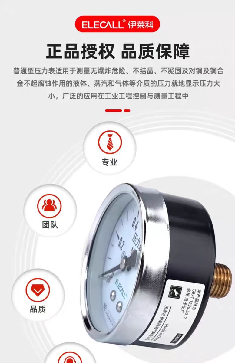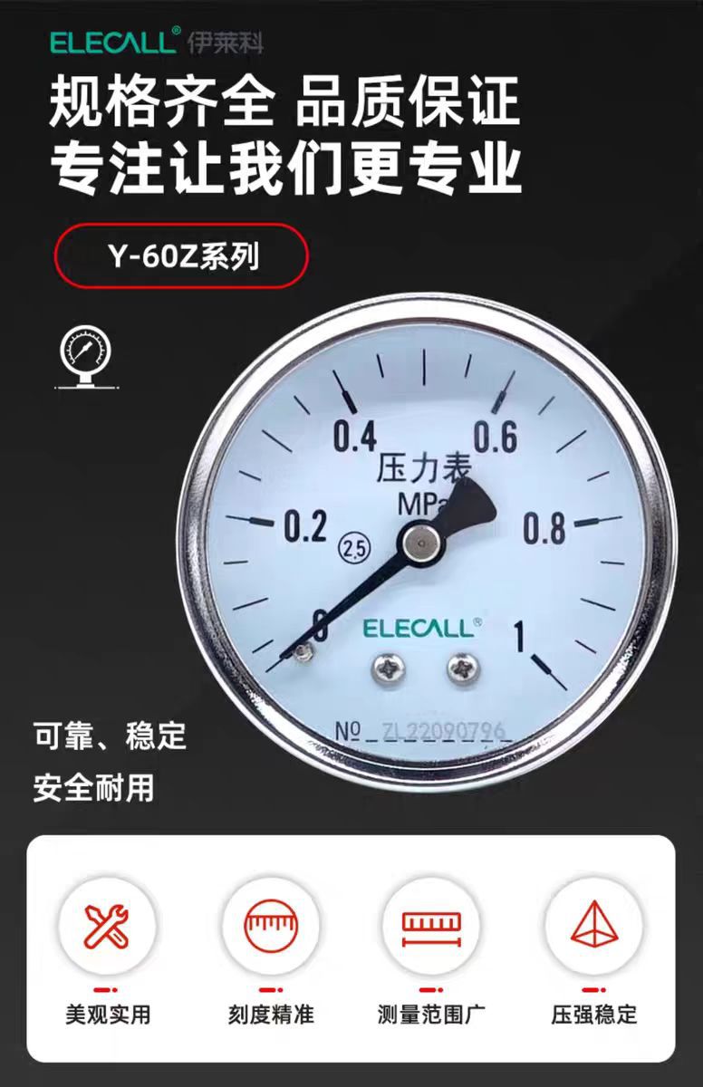 - What You Get: One ELECALL Y-60Z axial pressure gauge, customizable to various specifications, providing a versatile and essential tool for your pressure monitoring needs.