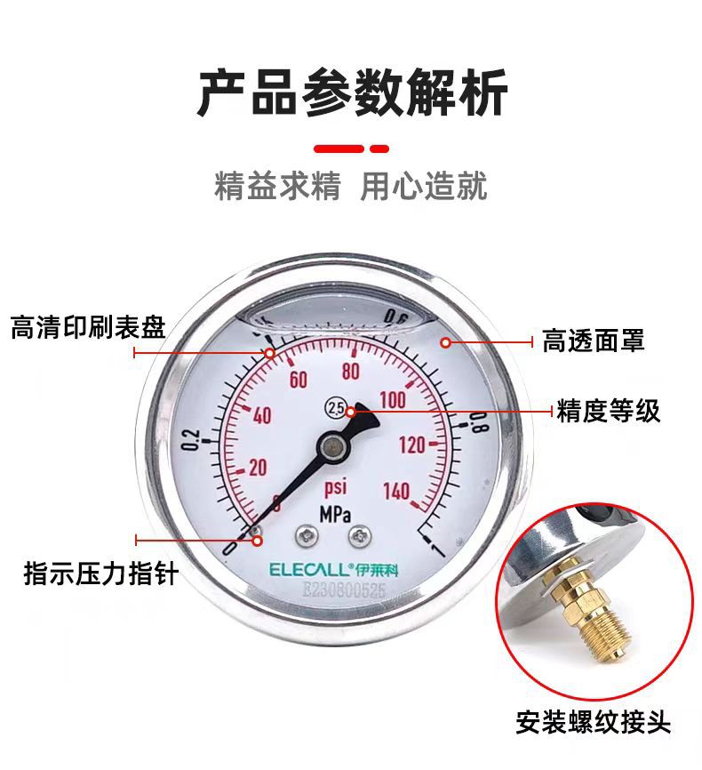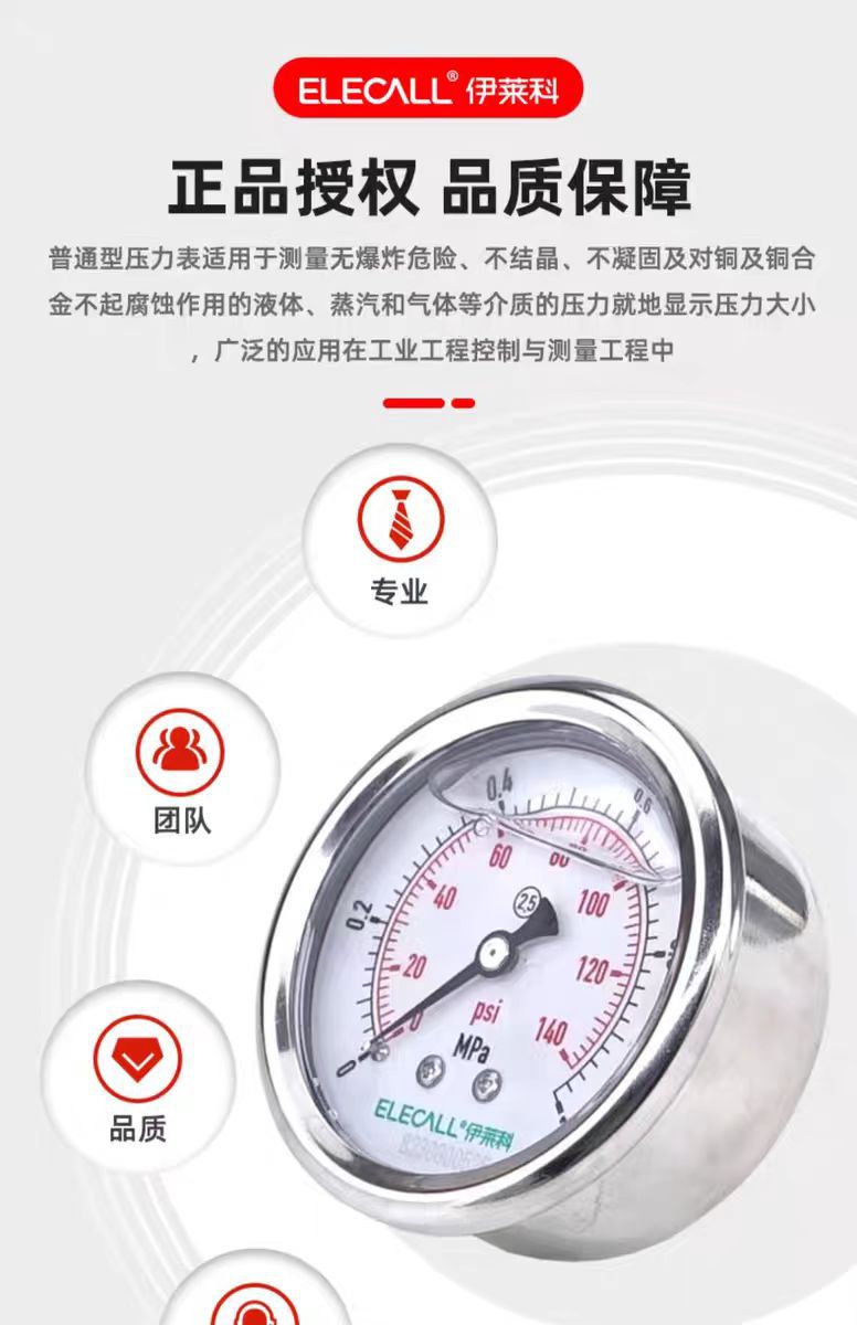 - Wide Compatibility: ELECALL YTN-60Z/YN60Z axial pressure gauge is designed for versatile applications, accurately measuring pressure for water, oil, and gas systems. Customizable connections are available.