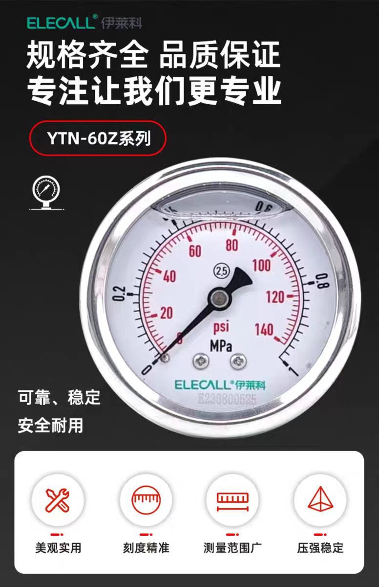 - What You Get: One ELECALL YTN-60Z/YN60Z shock-resistant pressure gauge. Provides reliable and accurate pressure monitoring for various HVAC and industrial applications.