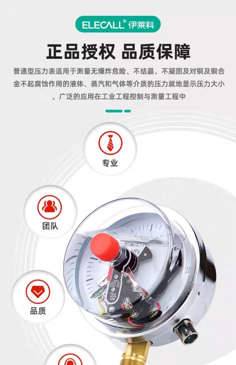 - Wide Compatibility: ELECALL YTNXC-100 series pressure gauge with various customizable specifications, suitable for measuring pressure in water, oil, and gas systems. Can act as a direct replacement for standard pressure switches.